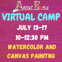 AGES 6 and Up - VIRTUAL CAMP Each week's activities include 4-6 projects depending on the theme of the week and project length. Kit will have extra material for after camp Create at home activities. Material KIT includes - Material required to create different projects based on the theme of the week - Watercolor, watercolor paper, sketching papers, Instructions, Canvas/s, paint, paint brushes, watercup, paper towel, paint palette, Mixed media material if required and one disposable apron. You can pick the Material from our studio or we can deliver to your door steps. FREE DELIVERY within 10 miles of studio radius. - East Brunswick, parlin, sayreville, south river, oldbridge, spotswood, edison. During the camp week, we will provide virtual instructions 10-12.30 pm M-F and. If kids need any assistance, our artists will be online. 10 mins break around 11:15am, We will provide all informations and Meeting link before your camp week starts. Feel free to contact us if you have any questions. email - pdave@artist-people.com