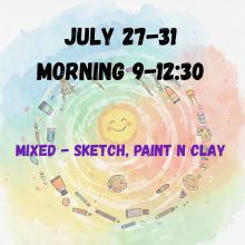 IN STUDIO CAMPS - Morning Session/ Half Day- Kids will have 15-20 mins break for snack - Please send snack (peanuts free) and water bottle with them.
